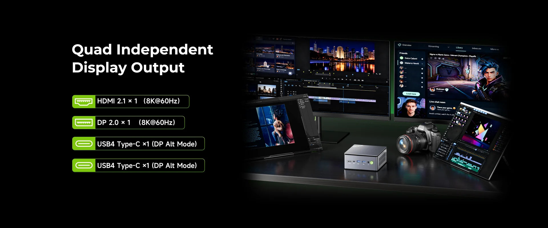 HDMI + DP + 2×USB4 quad-screen output, supports up to 8K resolution
